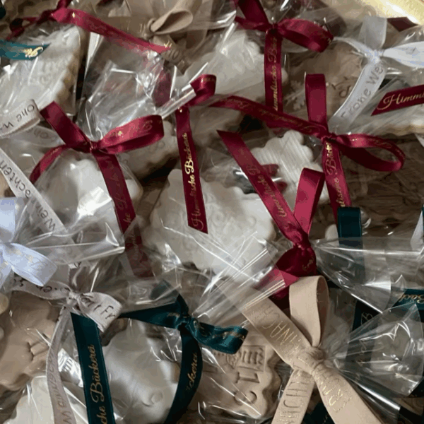 Geschenkband, das sich abhebt: personalisiert mit Logo oder Text – für Firmen und private Anlässe.